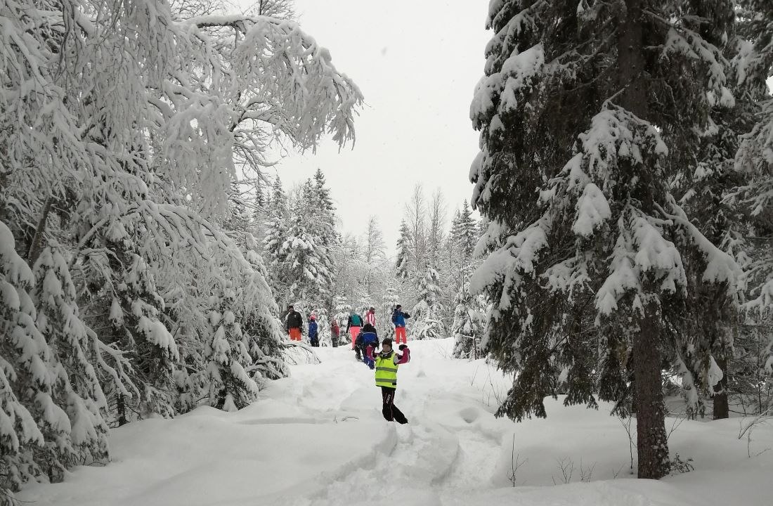 Kul och lärorikt i snön! Snöskovandring i naturen kl 10 på söndagar. Du kommer att gå med snöskor i den djupa snön och samtidigt beundra det vackra vinterlandskapet. Om du har tur kan du till och med se några spår av olika djur i snön.