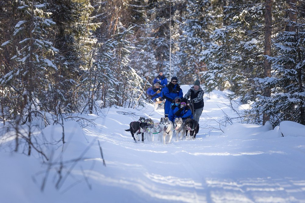 Måndagar kl 9-15. Efter frukost kör vi till huskyfarmen, träffar hundarna och tar en entimmestur med husky i den vackra skogen och på den frusna sjön. Efter turen kan vi värma upp oss vid elden i en stuga och njuta av laxsoppa och kaffe som kokats på elden. Herden kommer att berätta om hundarna, deras natur och deras träningsprogram. Kontakta oss via e-post om du vill boka huskysafarin en annan dag.